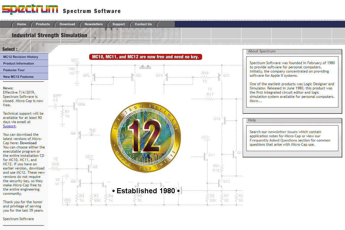 Microcap은 Spectrum Software사의 제품으로 원래 유료였으나, 2019년 7월4일부터 무료화 되었다.