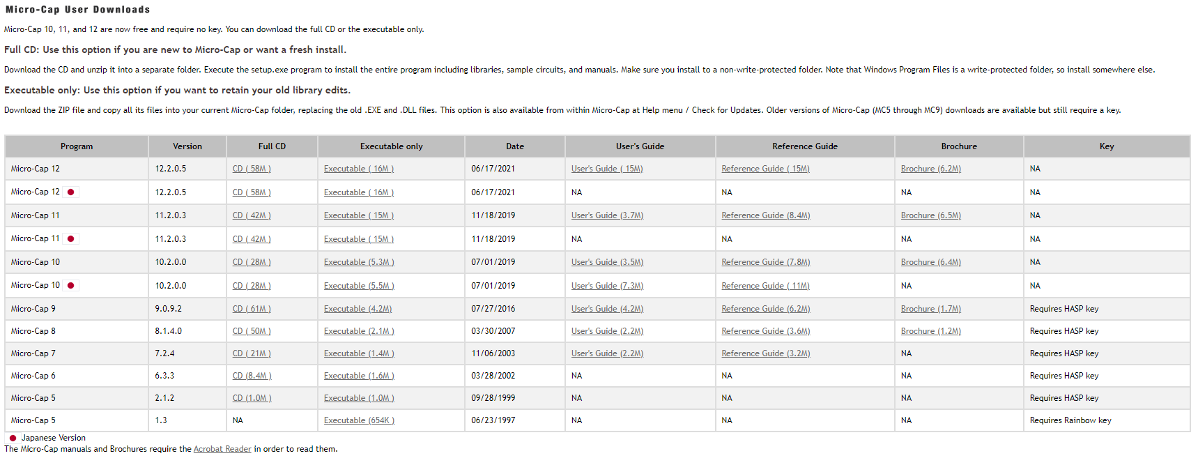 Micro-Cap 10, 11, and 12 are now free and require no key. You can download the full CD or the executable only. Full CD: Use this option if you are new to Micro-Cap or want a fresh install. Download the CD and unzip it into a separate folder. Execute the se