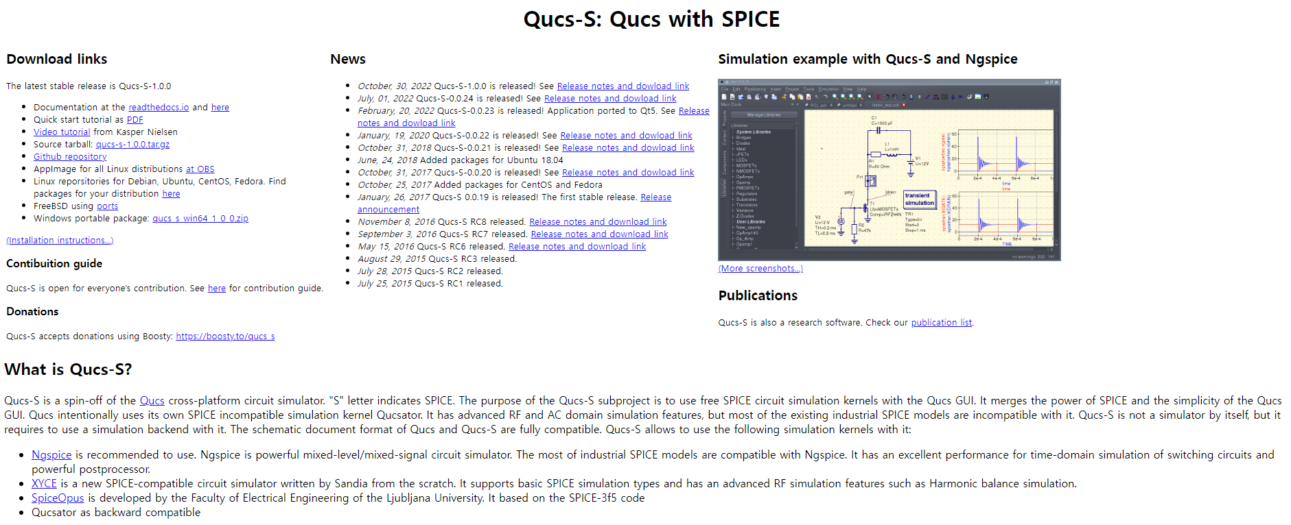 Download links The latest stable release is Qucs-S-1.0.0 (Installation instructions...) Contibuition guide Qucs-S is open for everyone's contribution. See here for contribution guide. Donations Qucs-S accepts donations using Boosty: https://boosty.to/qucs_