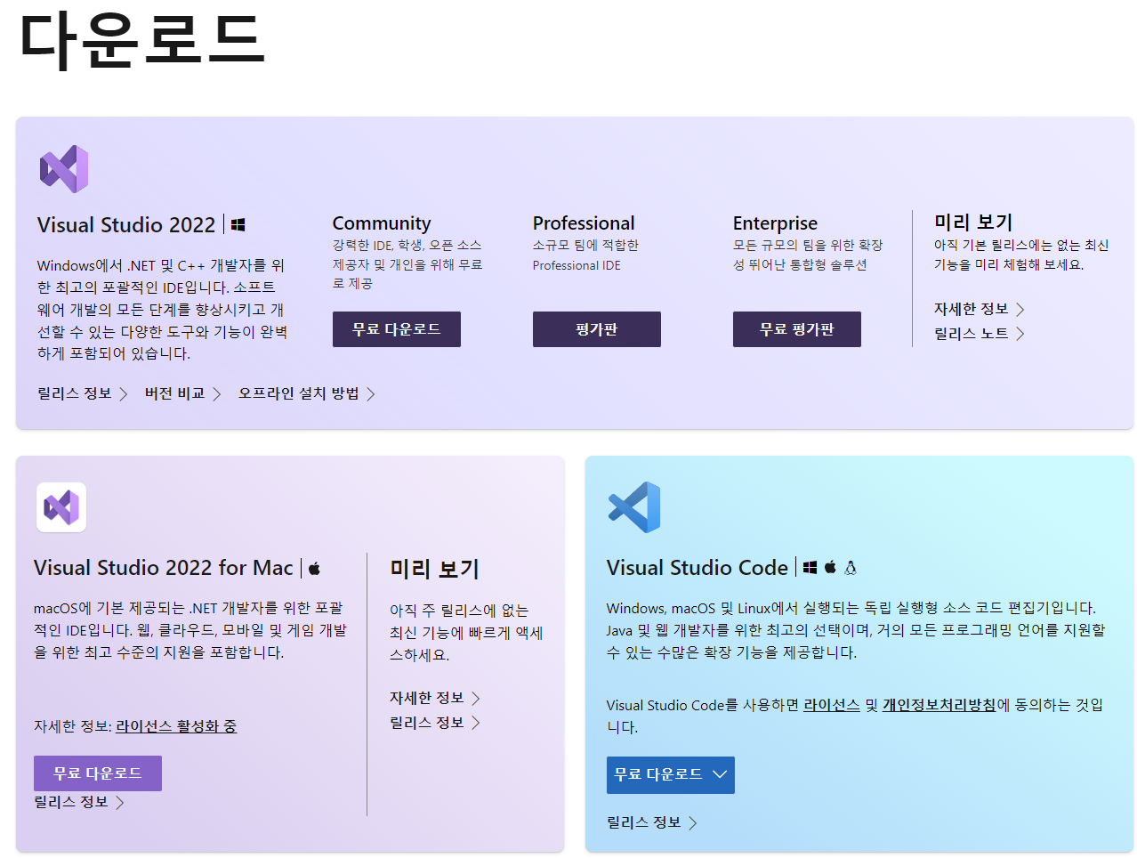 링크 : https://visualstudio.microsoft.com/ko/downloads/