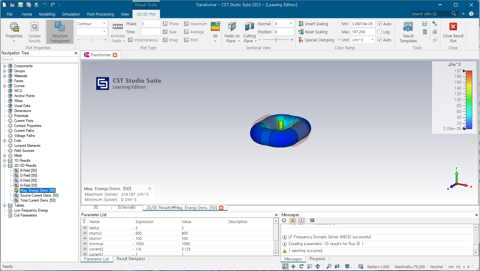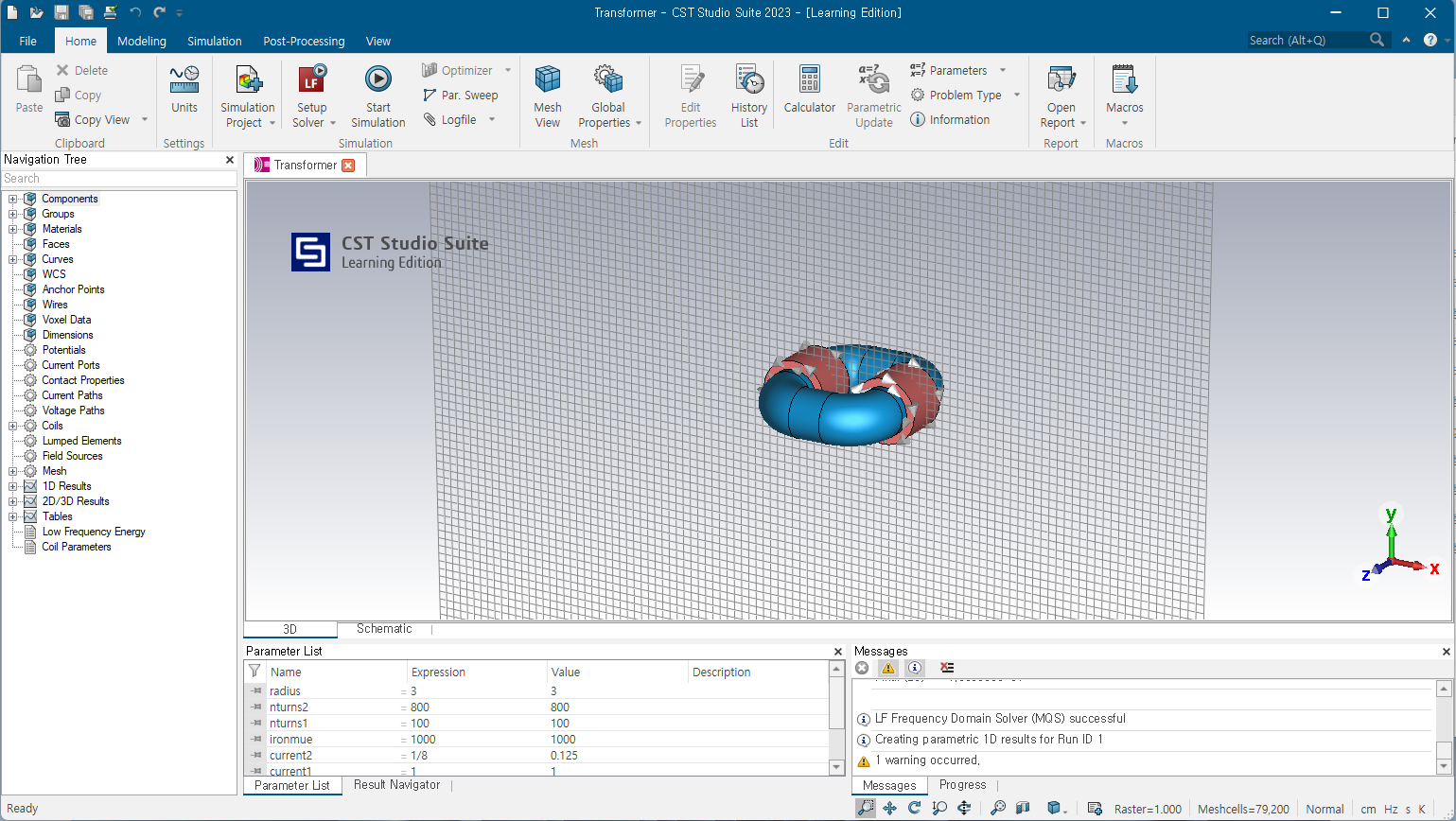 프로그램 내에 있는 Example있는 Transformer 예제를 불러와서 해석을 해 보았습니다. 문제없이 해석이 잘 진행되었습니다.