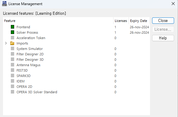 CST Studio Suite의 경우 High Frequency, Low Frequency, Thermal & Mechanics만 가능합니다.