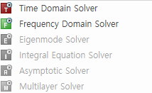 High Frequency의 경우, 지원 Solver는 다음과 같이 Time Domain Solver, Frequency Domain Solver 입니다.