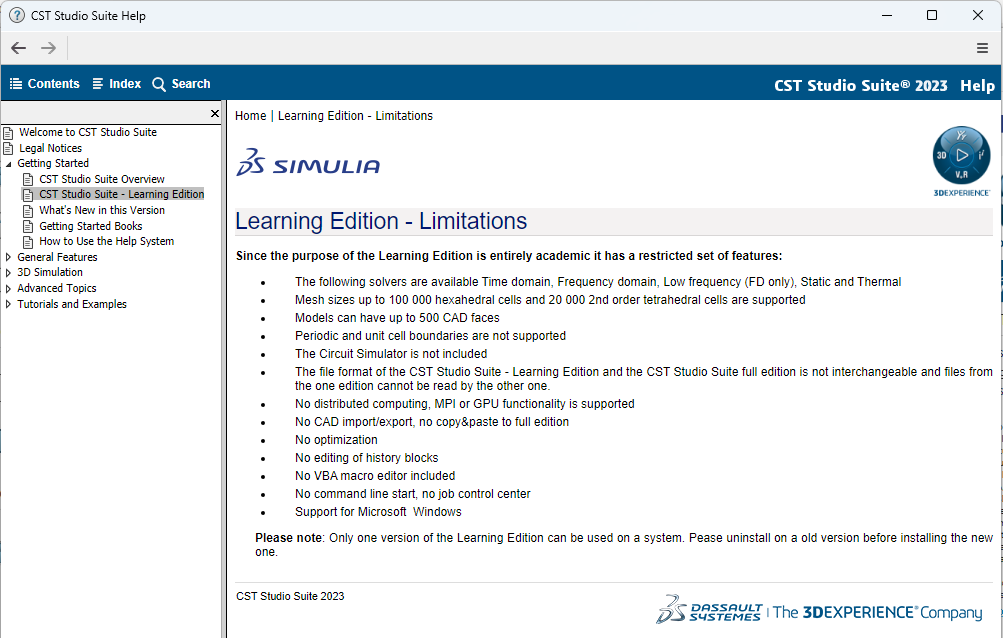오늘(2023/10/28) Dassault System 사이트를 보다보니 이전에 Student Edition이 Learning Edition으로 변경되어 있네요. 이 에디션은 학생뿐만 아니라 개인 학습 목적으로 모든 사람이 사용할 수 있다고 합니다. 물론 학습 및 학생용 에디션 라이센스 계약에 따른 상업적 목적은 제외된다고 합니다. 인터넷이 연결되어 있어야 하고, 이메일 등록 후 사용 가능합니다.