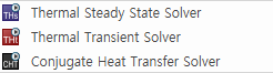 Thermal & Mechanic의 경우, 지원 Solver는 Thermal Steady State Solver, Thermal Transient Solver, Conjugate Heat Transfer Solver 입니다.