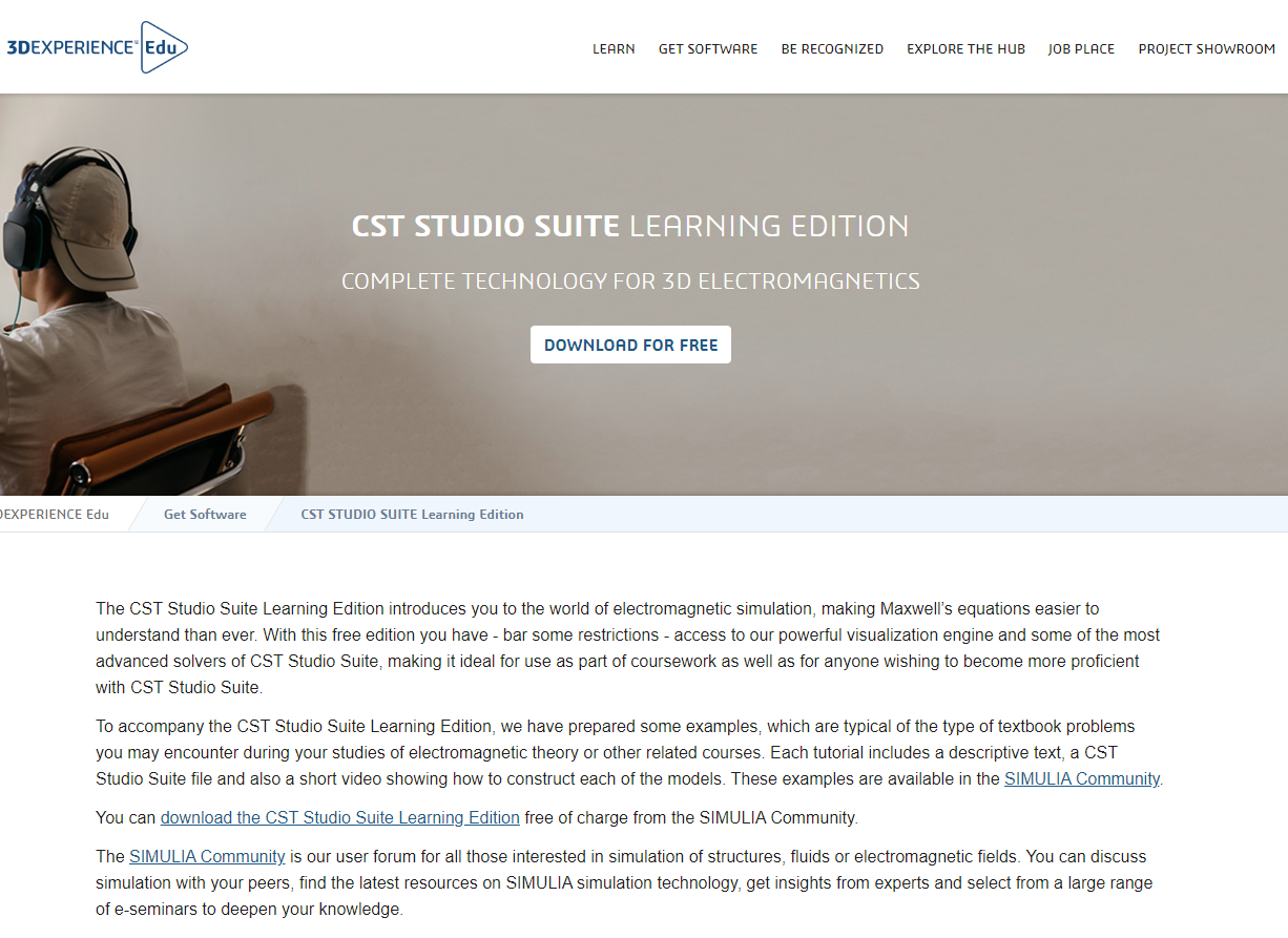 링크 : https://edu.3ds.com/en/software/cst-studio-suite-learning-edition
