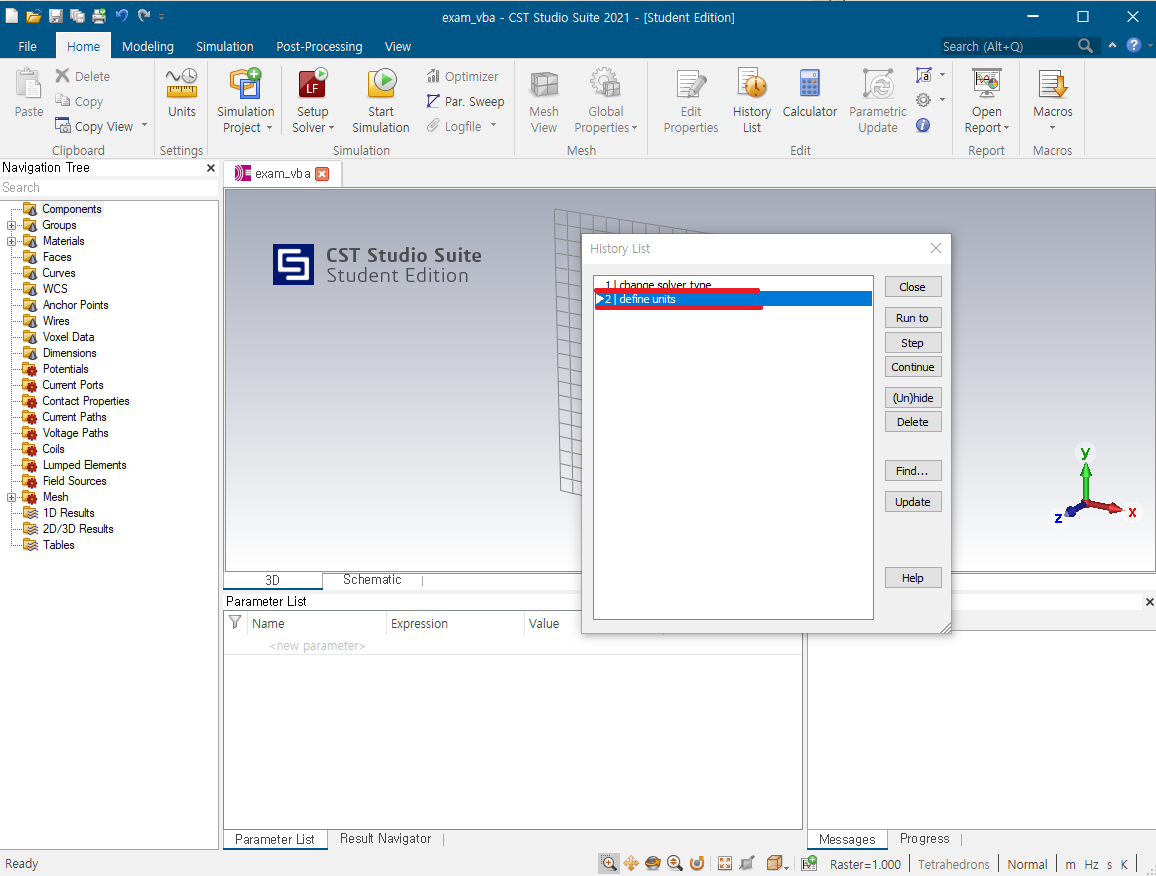 스크립트를 실행한 결과 CST Studio Suite에서 EM Studio가 잘 실행되고 동작된 것을 확인 할 수 있었습니다.