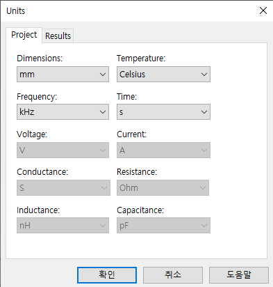 1-2. Unit 정의 : 길이 mm, 주파수 kHz, 온도 Celsius