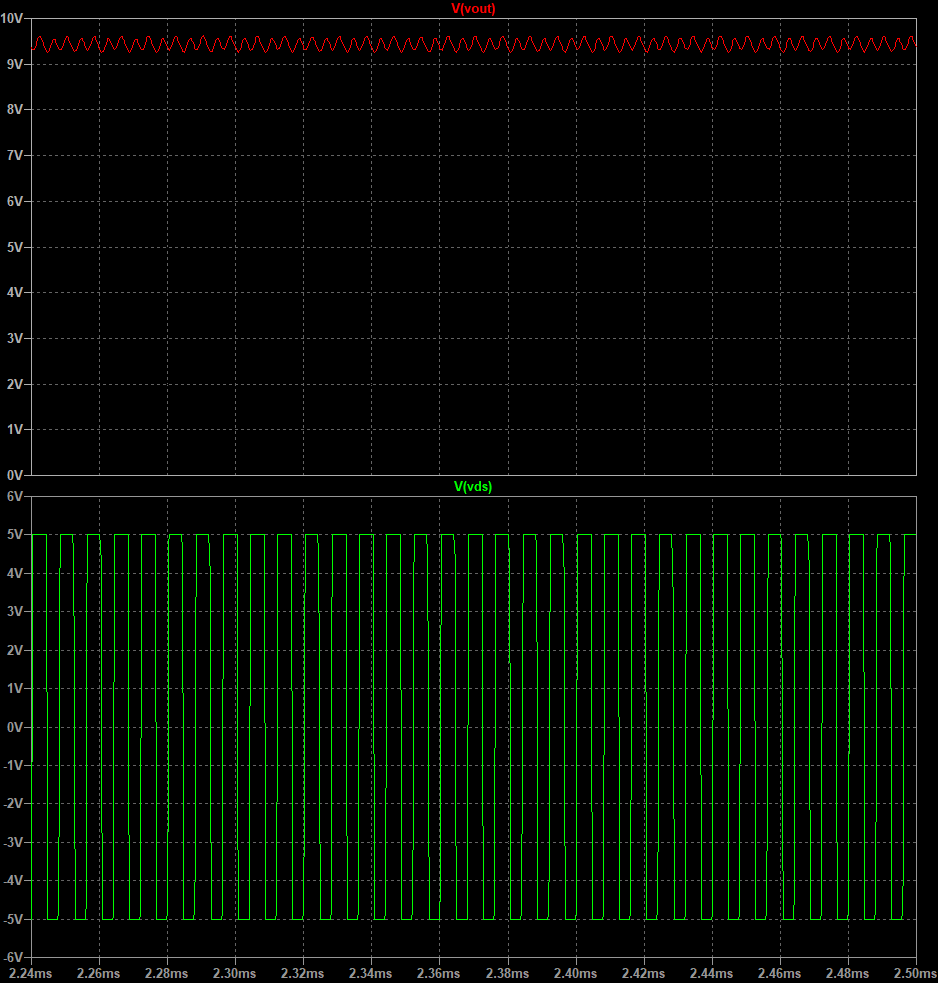아래의 그림은 위의 파형을 확대하여 나타낸 것이다. 세밀한 변화를 가져오는 것은 125kHz에 해당되는 주파수이다.